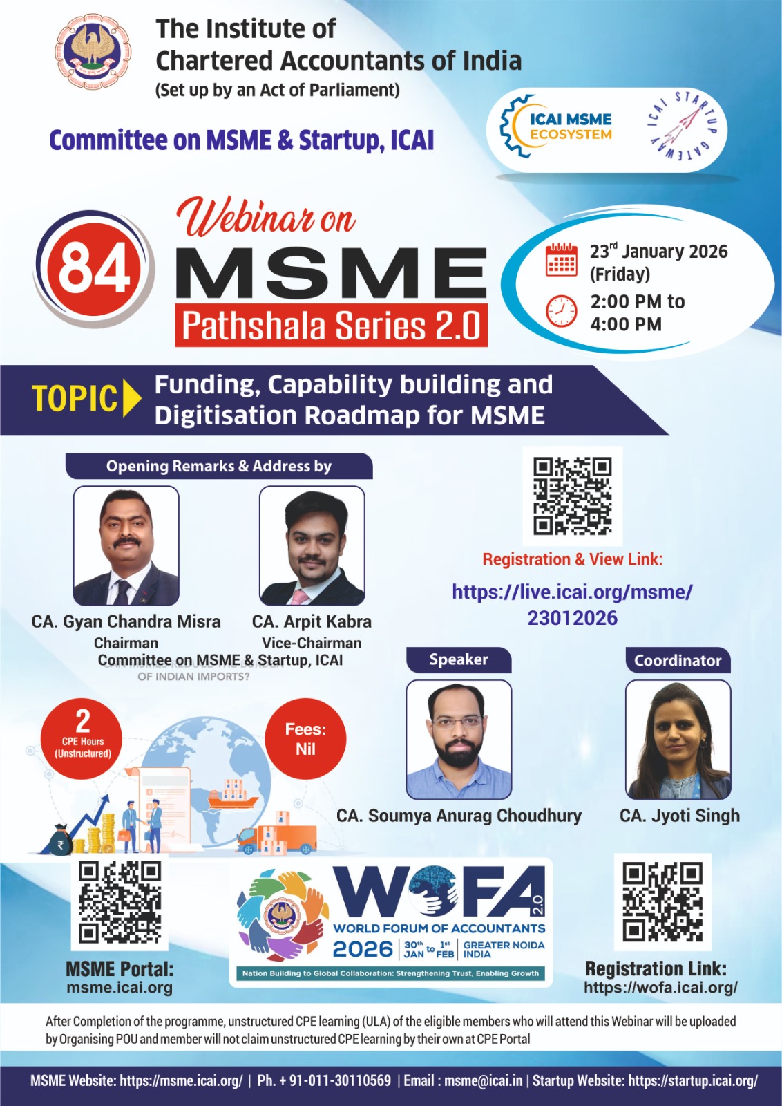 | 80. | Webinar on MSME Pathshala Series (4): Opportunities for CAs in Startups |